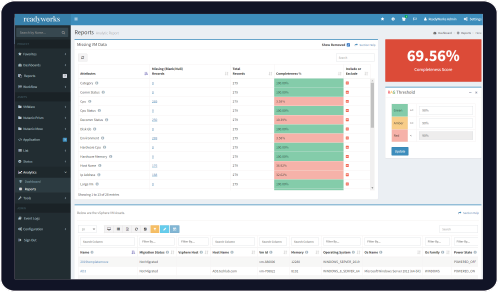 Using ReadyWorks connectors you can integrate all relevant data on your current VMware estate and use data scoring to correct mismatches, poll data owners for more information, and gain a holistic view of your environment. This means you are best equipped to understand your future VMware requirements and costs.