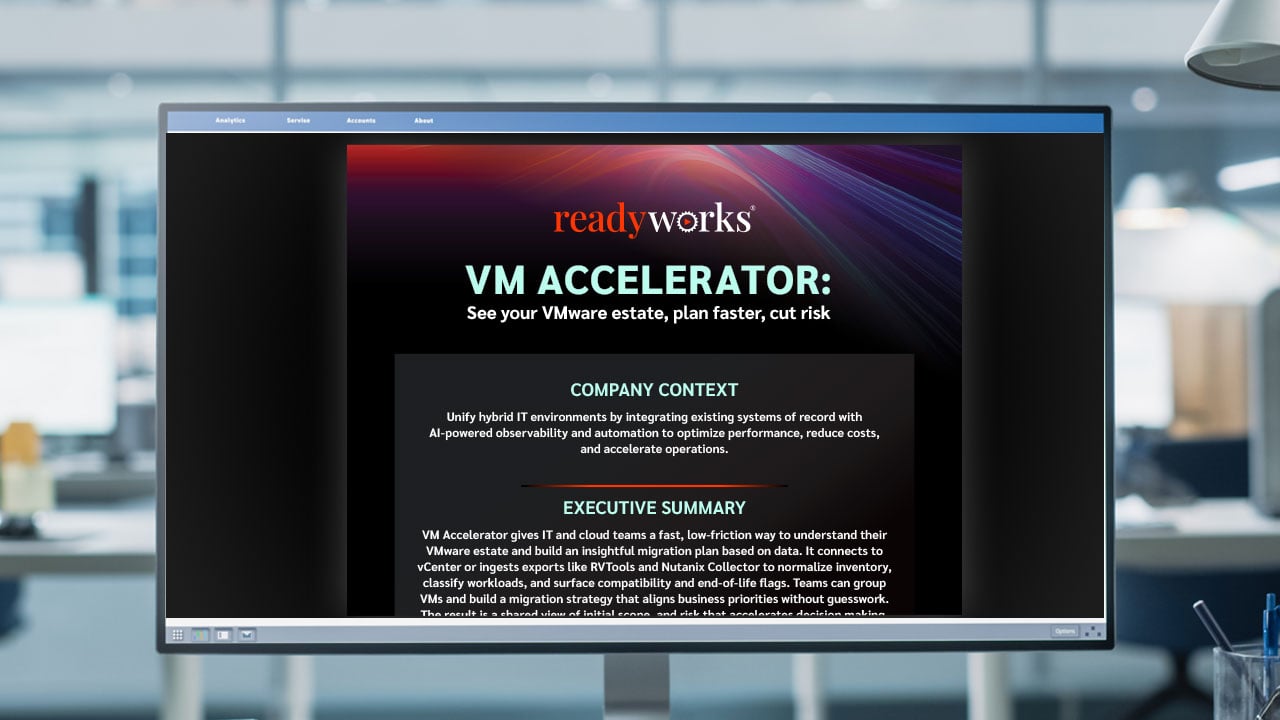 Explore all the key benefits and capabilities of the ReadyWorks VM Accelerator in a shareable one-page pdf document.